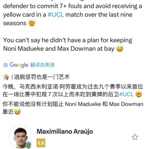 #阿森纳[超话]#在规则边缘游走的男人,今晨葡萄牙体育后卫阿劳霍在对阵你厂的比赛收获7次犯规却没有进一步处罚,成为近9个...